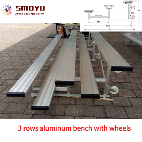 3 rows aluminum bench with wheels